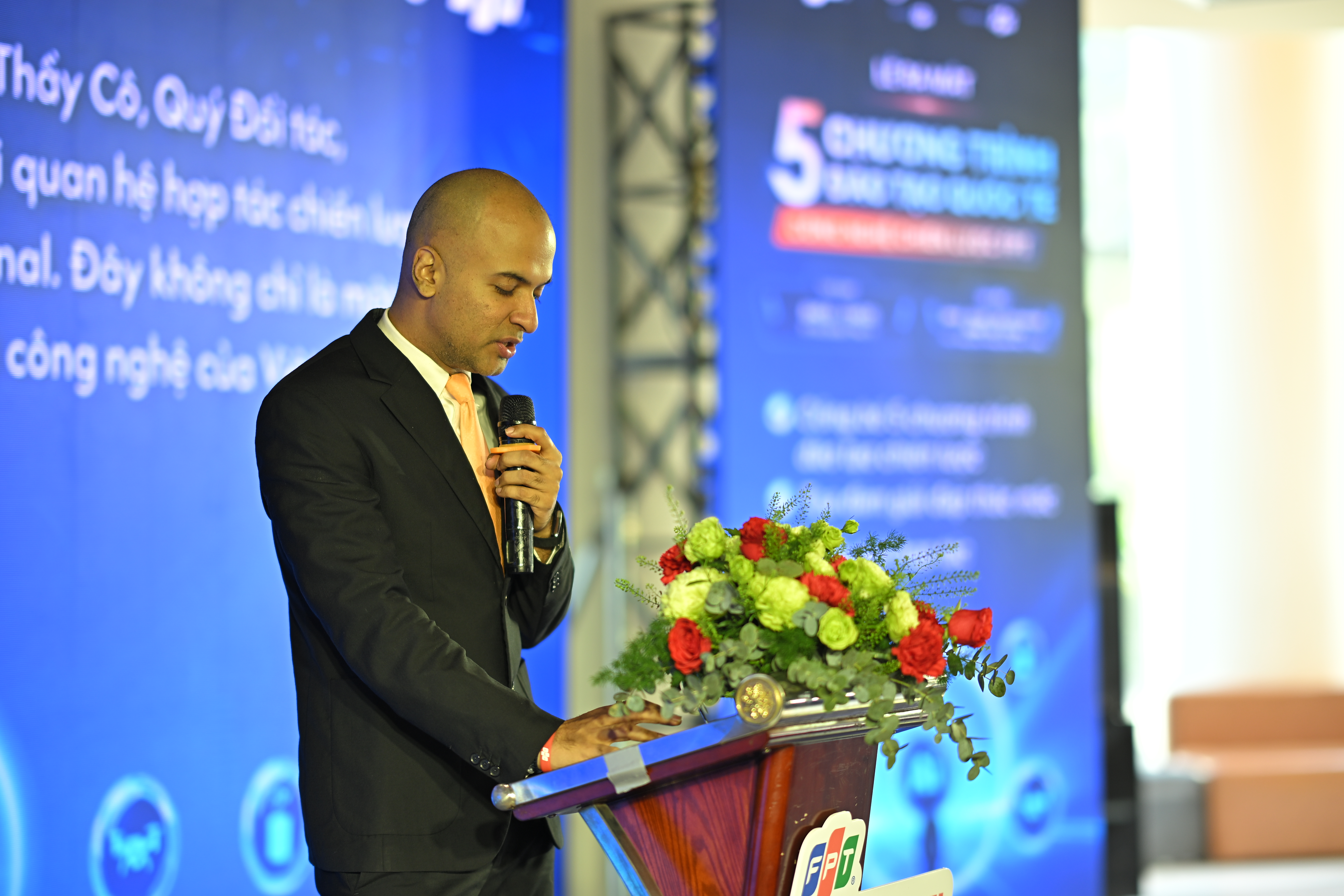 Ms. Arpita Mitra – Vice President of Cranes Varsity speaks at the launch of FPT’s five international strategic technology training programs.