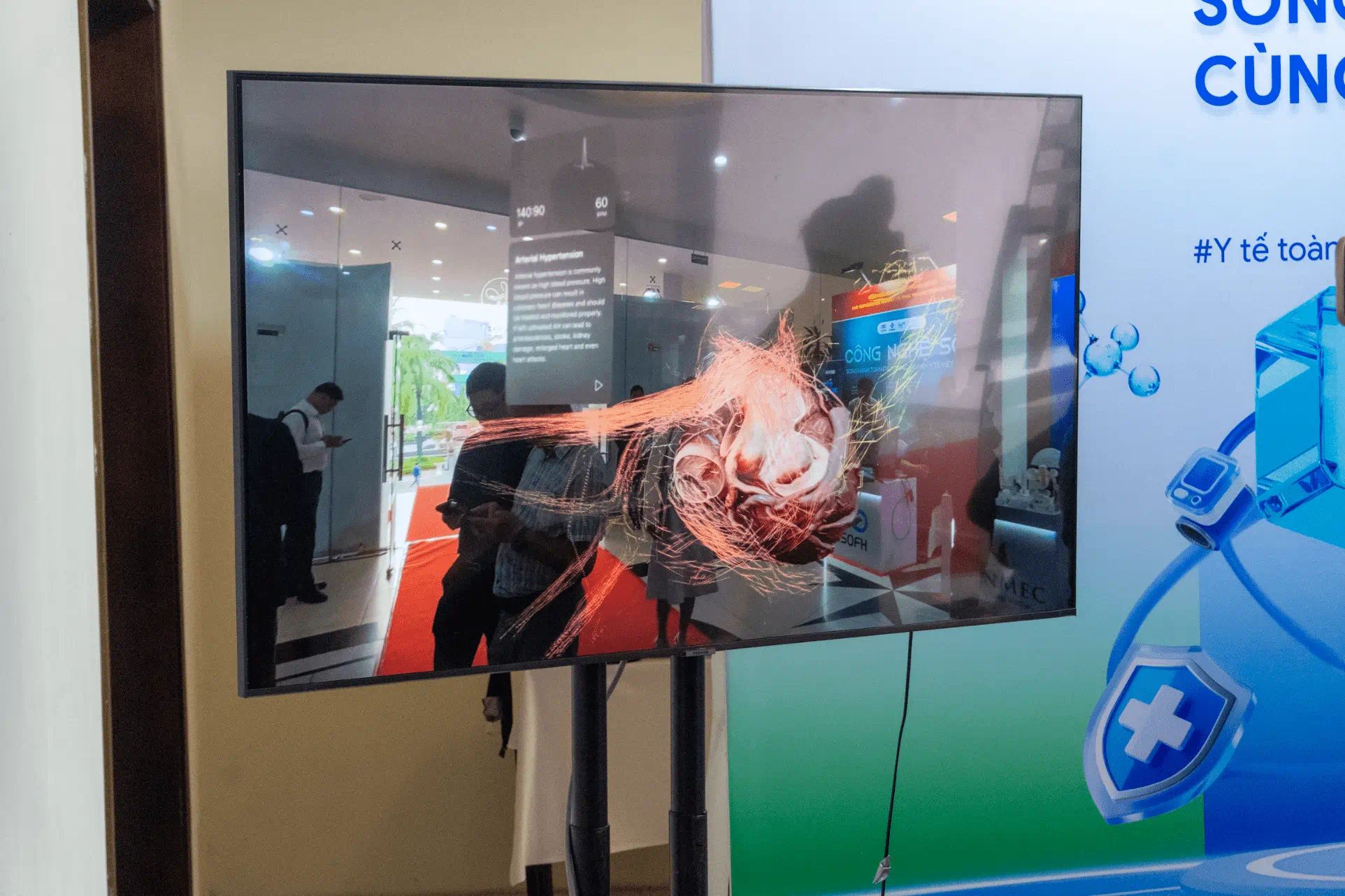 Another highlight at the exhibition was the 3P continuous glucose monitoring device, an IoMT solution that tracks glucose 24/7 without requiring blood samples. Data is updated every three minutes and displayed on a mobile app, allowing users to monitor the effects of diet, activity, and medication over 14 days. A “replay” feature visualizes glucose fluctuations across the day. The data can also be shared with physicians via FPT MediCare, enabling timely and precise treatment adjustments.