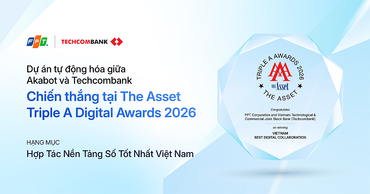 Vượt qua nhiều đề cử sáng giá đến từ các định chế tài chính lớn trong khu vực, FPT cùng ngân hàng Techcombank xuất sắc giành giải thưởng “Hợp tác nền tảng số xuất sắc nhất” (Best Digital Collaboration) tại The Asset Triple A Awards 2026 với giải pháp Akabot Agentic Automation.
