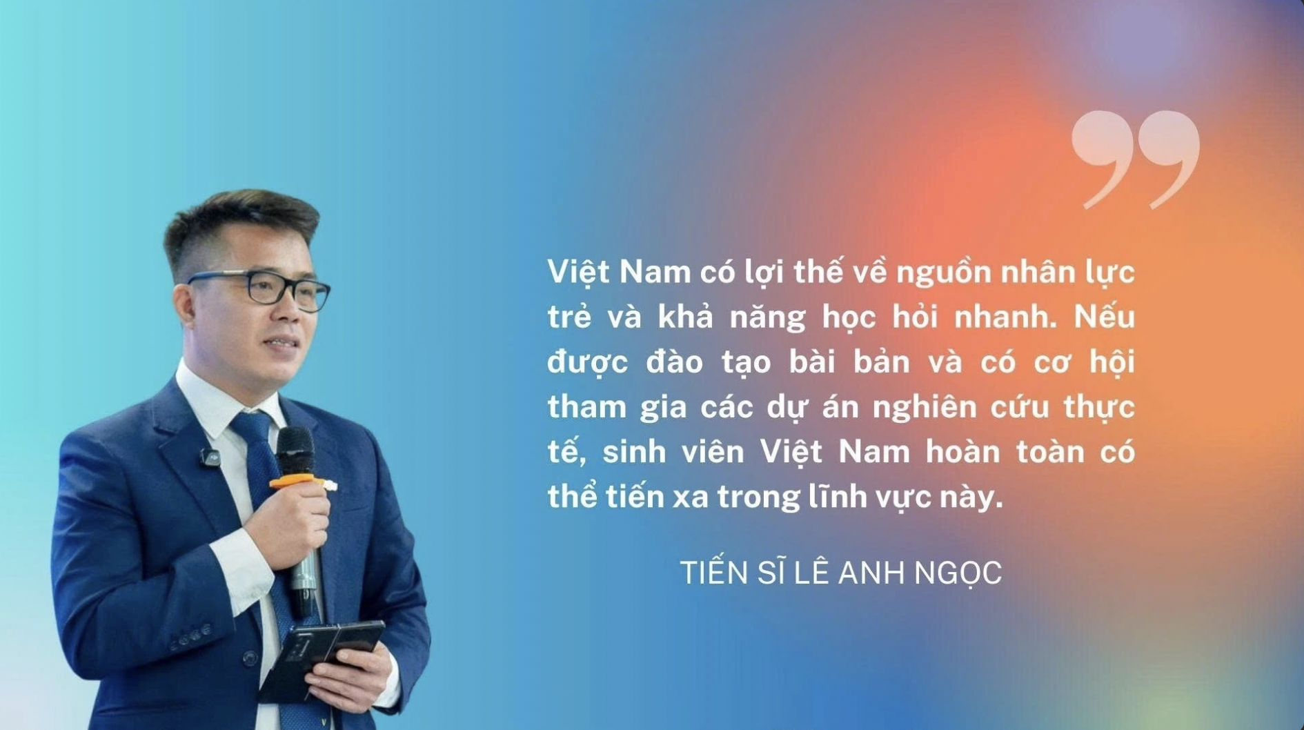 Anh cho rằng cơ hội của Việt Nam trong lĩnh vực bán dẫn không chỉ nằm ở việc thu hút các doanh nghiệp công nghệ, mà còn ở khả năng xây dựng một hệ thống đào tạo và nghiên cứu đủ mạnh để chuẩn bị lực lượng kỹ sư cho tương lai. “Việt Nam có lợi thế về nguồn nhân lực trẻ và khả năng học hỏi nhanh. Nếu được đào tạo bài bản và có cơ hội tham gia các dự án nghiên cứu thực tế, sinh viên Việt Nam hoàn toàn có thể tiến xa trong lĩnh vực này”, anh nói.