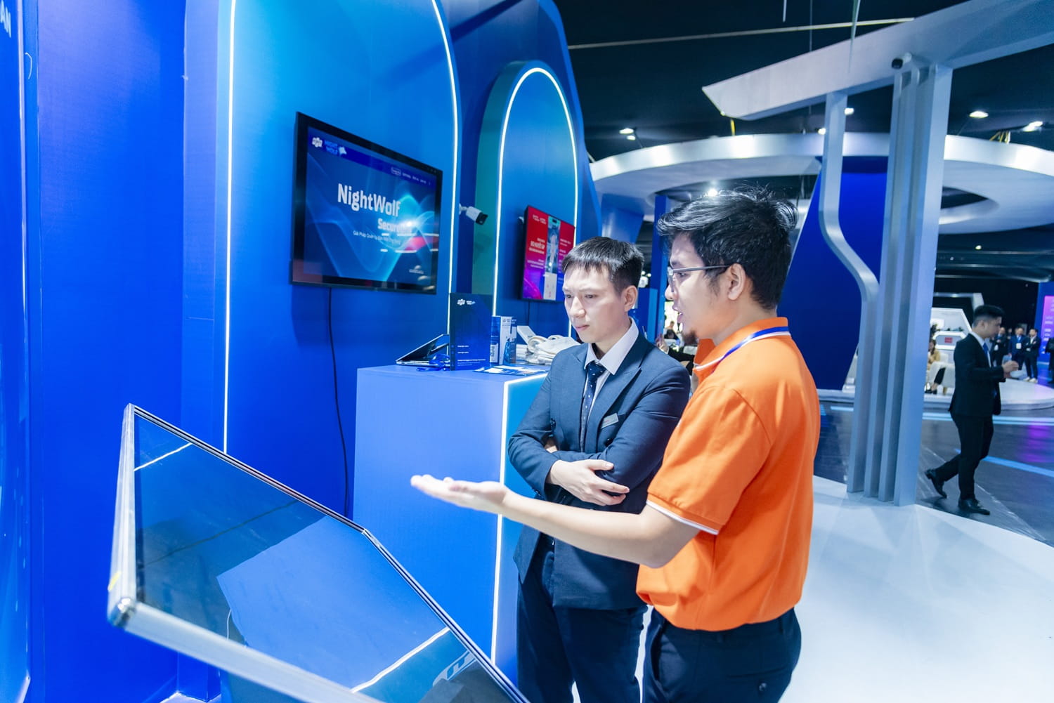 Tại Triển lãm trong khuôn khổ Lễ mở ký Công ước Hà Nội, FPT giới thiệu các giải pháp bảo mật ứng dụng AI đã được giải thưởng tại khu vực, góp phần cùng quốc gia, tổ chức, doanh nghiệp kiến tạo không gian mạng an toàn, tự chủ và bền vững. 08 nền tảng, giải pháp, sản phẩm, dịch vụ tiêu biểu được FPT giới thiệu tại Triển lãm gồm: QaiDora Vision và FPT Camera AI – Nền tảng giám sát an ninh ứng dụng trí tuệ nhân tạo; NightWolf SecureOne - Giải pháp An ninh mạng tinh gọn cho doanh nghiệp hiện đại; Dịch vụ Tư vấn An toàn thông tin; Dịch vụ Đánh giá & Kiểm thử An ninh; Dịch vụ Giám sát & Vận hành An ninh mạng; Dòng chip quản lý nguồn; AI trong chăm sóc sức khoẻ từ xa.