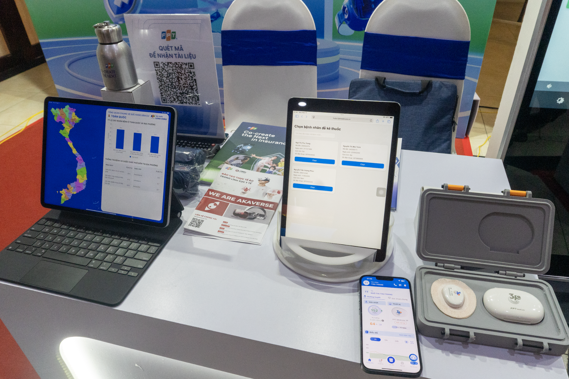 Một điểm nhấn khác tại triển lãm là máy đo đường huyết liên tục 3P, thiết bị IoMT giúp theo dõi đường huyết 24/7 mà không cần lấy máu. Dữ liệu cập nhật mỗi ba phút được hiển thị trực quan trên ứng dụng điện thoại, cho phép người dùng theo dõi tác động của chế độ ăn, vận động và thuốc điều trị trong 14 ngày, đồng thời tái hiện toàn bộ biến động đường huyết trong ngày thông qua tính năng “replay”. Báo cáo dữ liệu có thể được chia sẻ trực tiếp với bác sĩ qua nền tảng FPT MediCare, giúp đánh giá khách quan tình trạng sức khỏe, từ đó điều chỉnh phác đồ điều trị kịp thời.